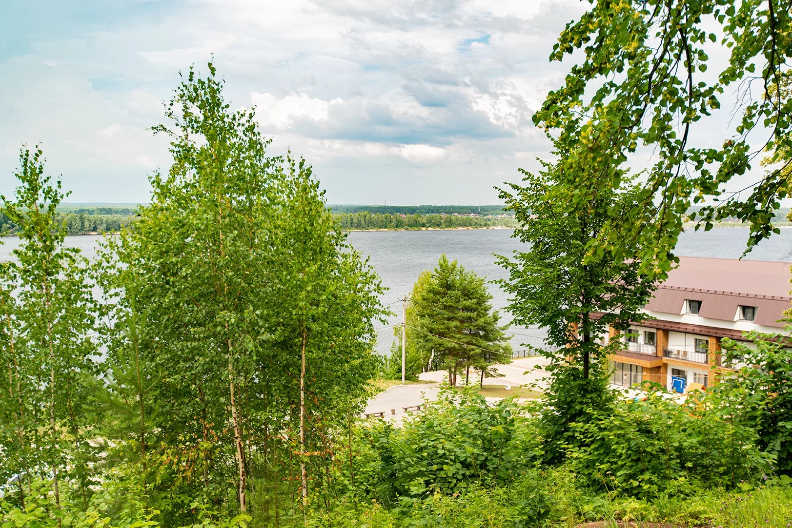 Комфортабельная оборудованная беседка на горе с видом на Волгу.